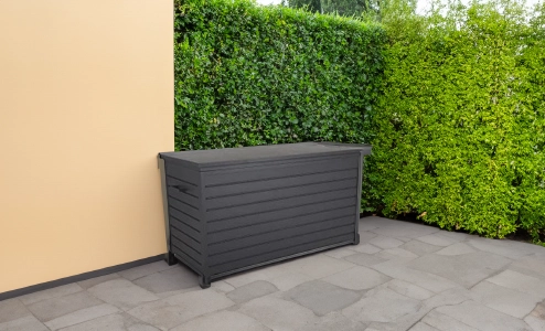 Halten Sie Ihren Garten ordentlich und stilvoll mit unseren vielseitigen Kissenboxen von Möbel Tschannen.